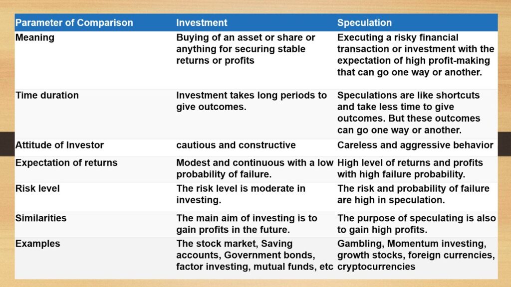 Key Differences Between Investment and Speculation